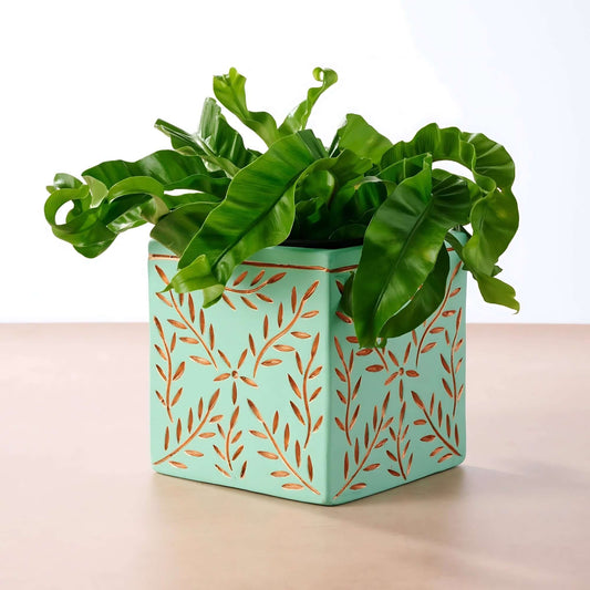 Tila Terracotta Debossed Leaf Planter - Fair Trade